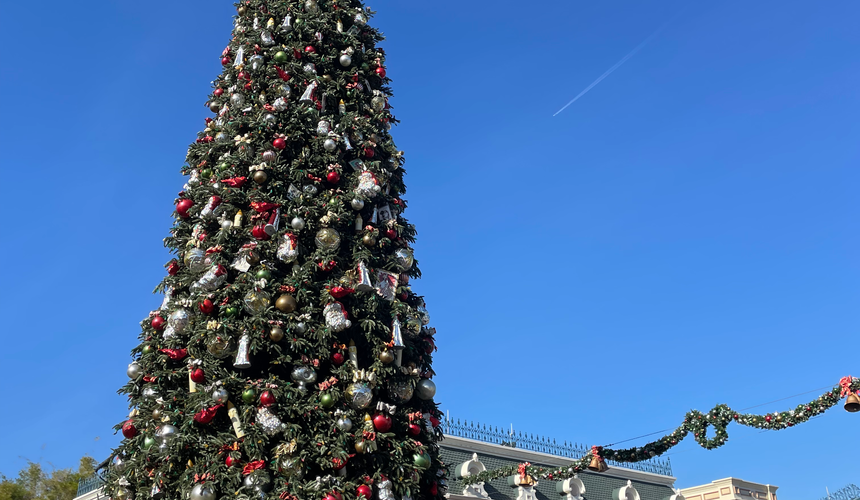 Each park has a magnificent tree at the entrance, perfectly decorated with on-theme ornaments.